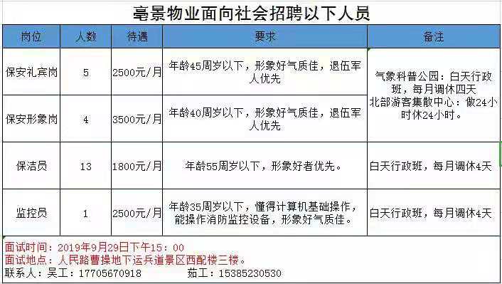 亳景物業(yè)面向社會招聘以下人員